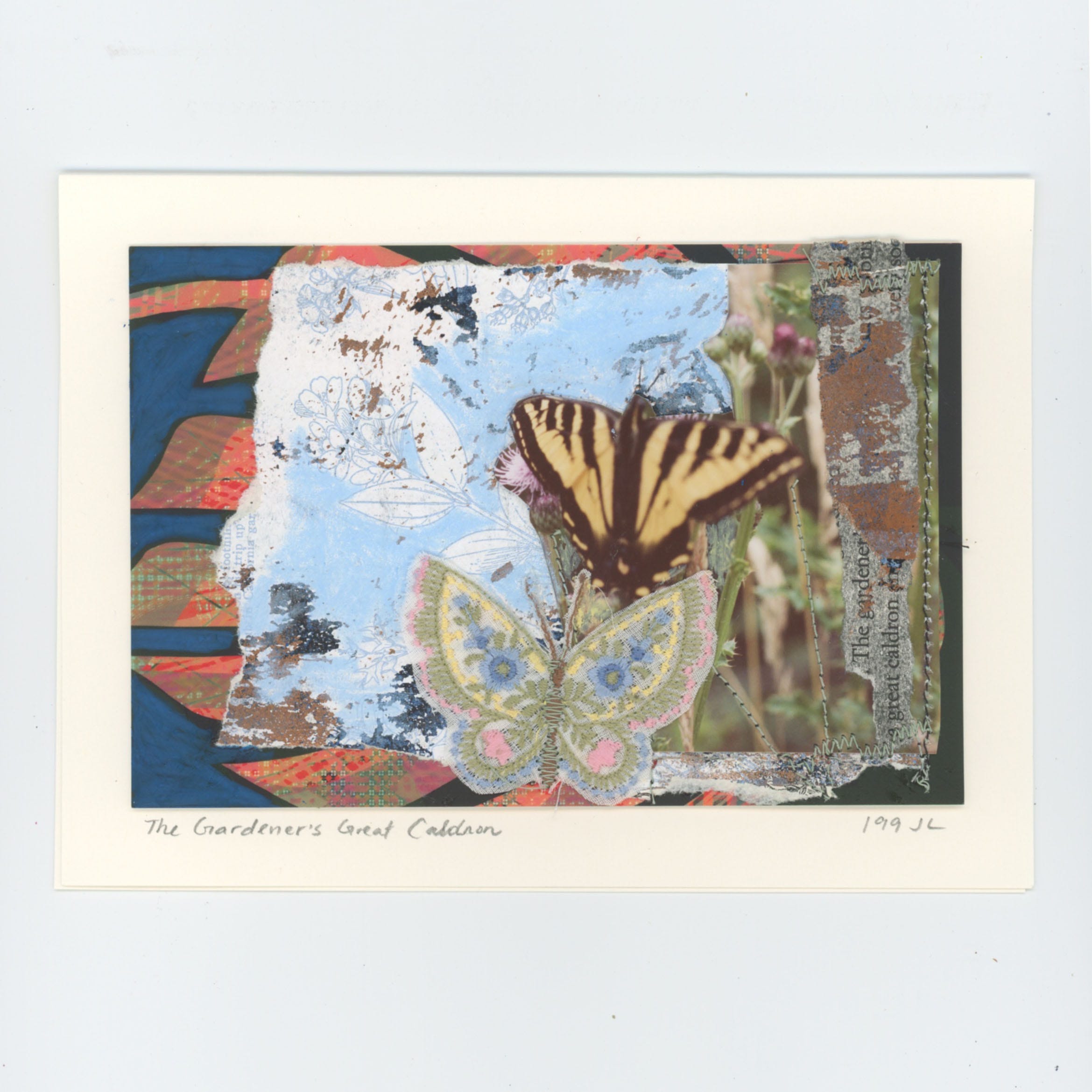 (6) “Embellished” (Postcards with Embroidered Stitching); (7) “Botanicals” (featuring printed botanical material); (8) Scapes (featuring sea, land, tree, and fantasy scapes) - (sample below)